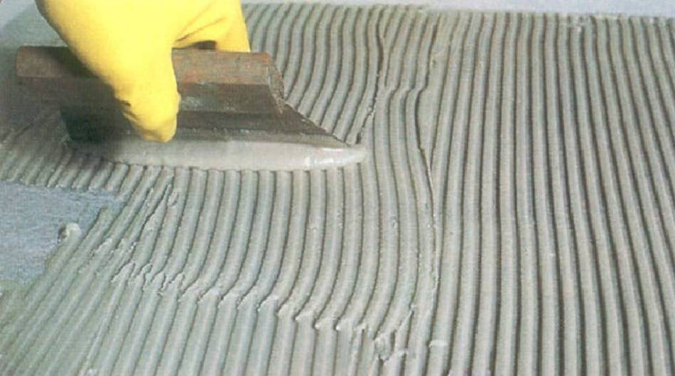 Solid bed fixing is recommended for all horizontal applications and for vitreous, semi-vitreous, quarry, mosaic terrazzo, and marble flooring tiles. Additional buttering on the back of the tiles with CEM515 is preferable to ensure full adhesive contact.