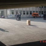 Pot-Holes Repairs: To repair small pot-holes (less than 4 sq. ft.), heat the pavement and break it around the pot hole. Spray the bottom of the pot hole with CHEM-CRETE ASP. Mix the broken pavement with CHEM-CRETE ASP, and compact it back into the pot hole area. For better performance, spray the compacted pavement with at an average rate of 100 to 110 ft2 (2.45 to 2.7 m2/liter) in one application only.