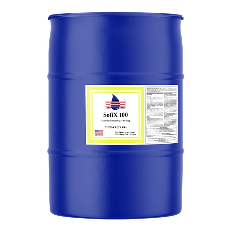 Surface Preparation: Surface must be clean, and free of paint, sealer, oil, adhesive, curing compound, form release agent and/or anything that will not allow CHEM-CRETE SOFIX CCC100 to penetrate into the substrate. Areas which require cleaning must be cleaned by scrubbing, pressure washing or other methods to remove any surface dust, dirt or other contaminants. CHEM-CRETE SOFIX CCC100 may be applied to damp surfaces as long as no standing water or puddles are present. Heavy contaminated areas must be cleaned using CHEM-CRETE CONCLEAN CCC060 biodegradable concrete cleaner and a pressure washer to help remove deeply penetrated areas.