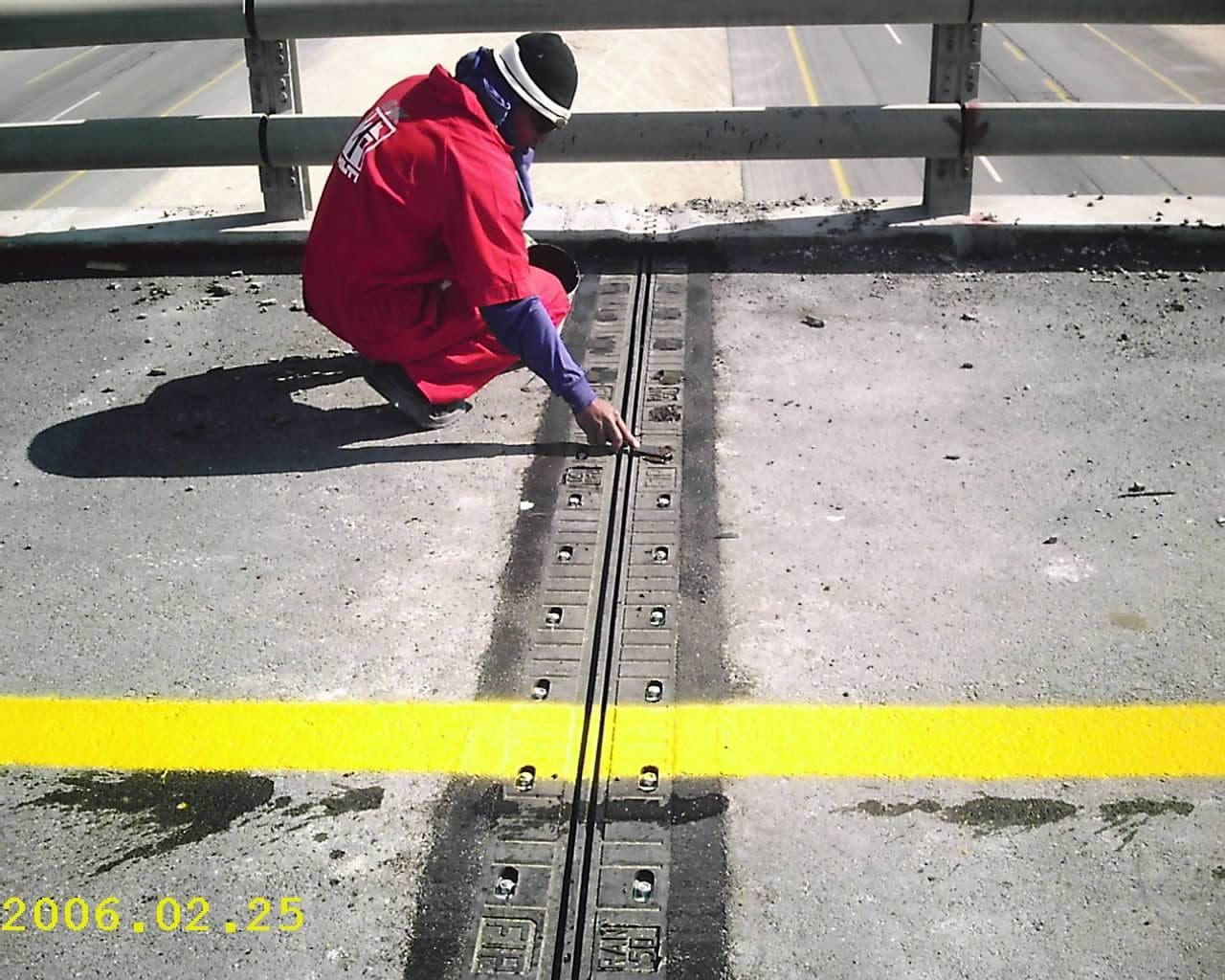 CHEM-JOINT MORTAR is used as ancillary filling material for the installation of highway expansion joints in viaducts, bridges and overpasses, the filling of concrete slab ends in airport construction (with a strong and elastic connection) and any other use where large voids need to be filled with a material capable of reversible deformation and whose properties are suitable to resist continued mechanical stress.